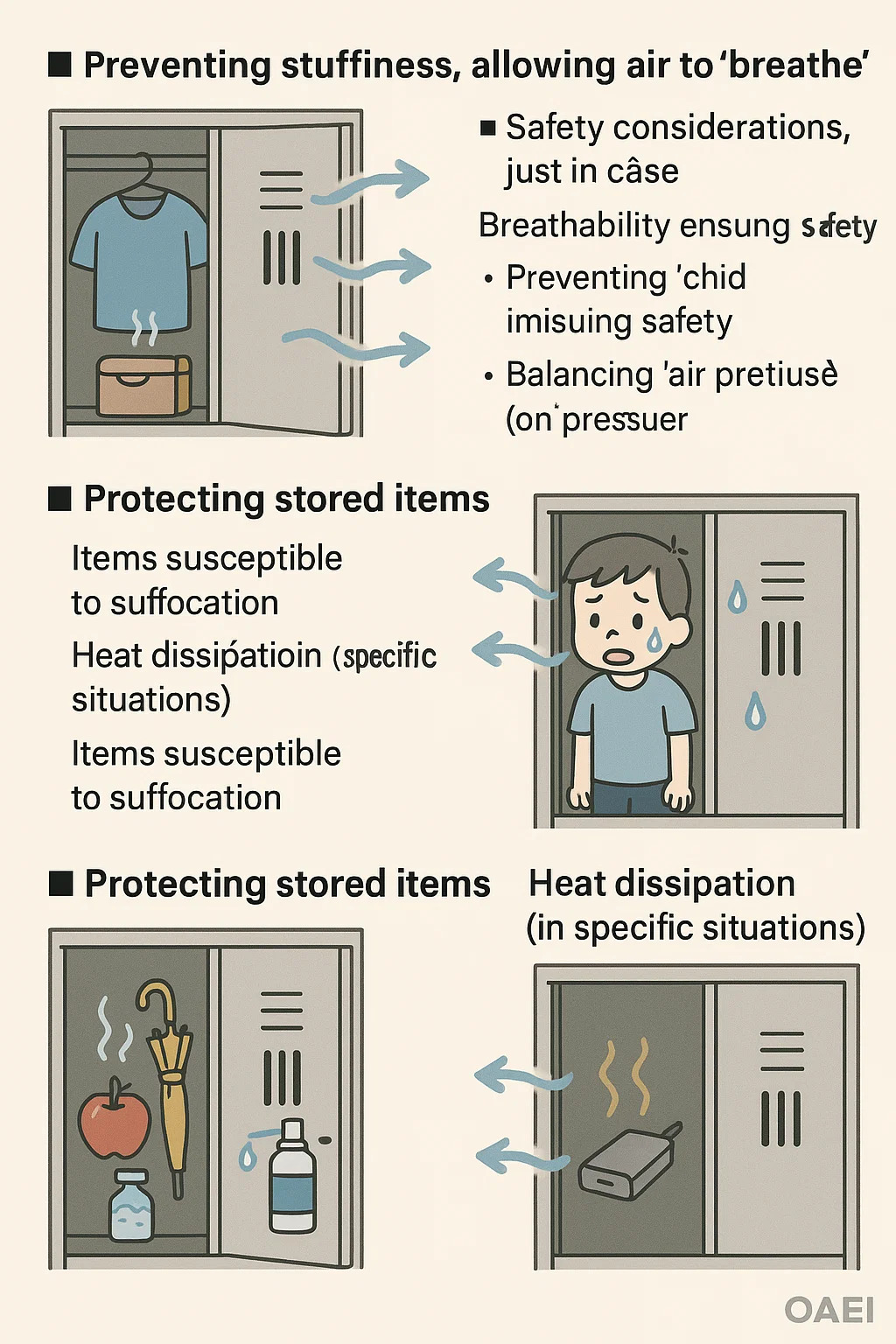 Ang mga item na madaling kapitan ng suffocation: Ang ilang mga item na maaaring pansamantalang mag -imbak sa locker, tulad ng prutas, isang bahagyang mamasa -masa na payong, o ilang mga kemikal (tulad ng paglilinis ng spray), ay maaaring maglabas ng mga amoy o gas. Pinapayagan ng mga butas ng bentilasyon na ang mga gas na ito ay mabagal, na pumipigil sa mga ito mula sa pag -iipon sa loob ng locker at nakakaapekto sa iba pang mga item o kahit na ang locker mismo (e.g., corroding metal).